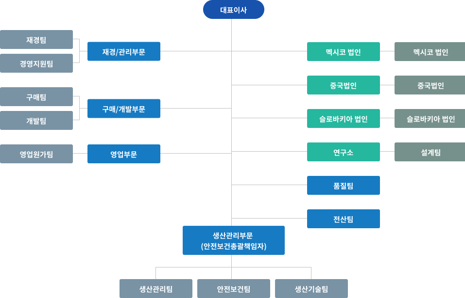 주 생산품 자동차 핸들(Steering Wheel) 인원 207명